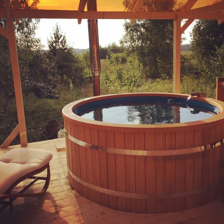 Тестировали с подругами на следующий день и остались очень довольны. С растопкой печи легко справились без мужской помощи (топили брикетами), это огромный плюс для тех, кто планирует отдыхать исключительно женским коллективом. Несмотря на то, что высота моей фурако 115 см + высота ножек, забираться в нее очень легко. Приставная лестница устойчивая и удобная. На сиденьях, расположенных по кругу, комфортно может разместиться 5 человек (можно и больше, но уже тесновато).